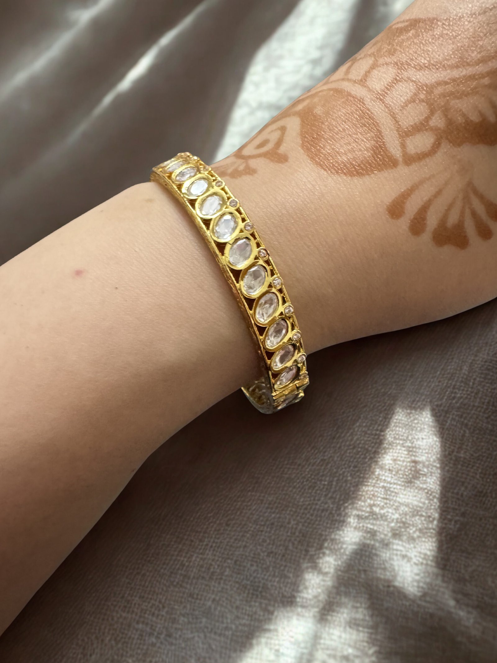 Minimal yet radiant, these Sleek Polki Openable Bangles are designed for effortless elegance. Featuring fine polki detailing in a slim, refined silhouette, they add a graceful sparkle without overpowering your look.