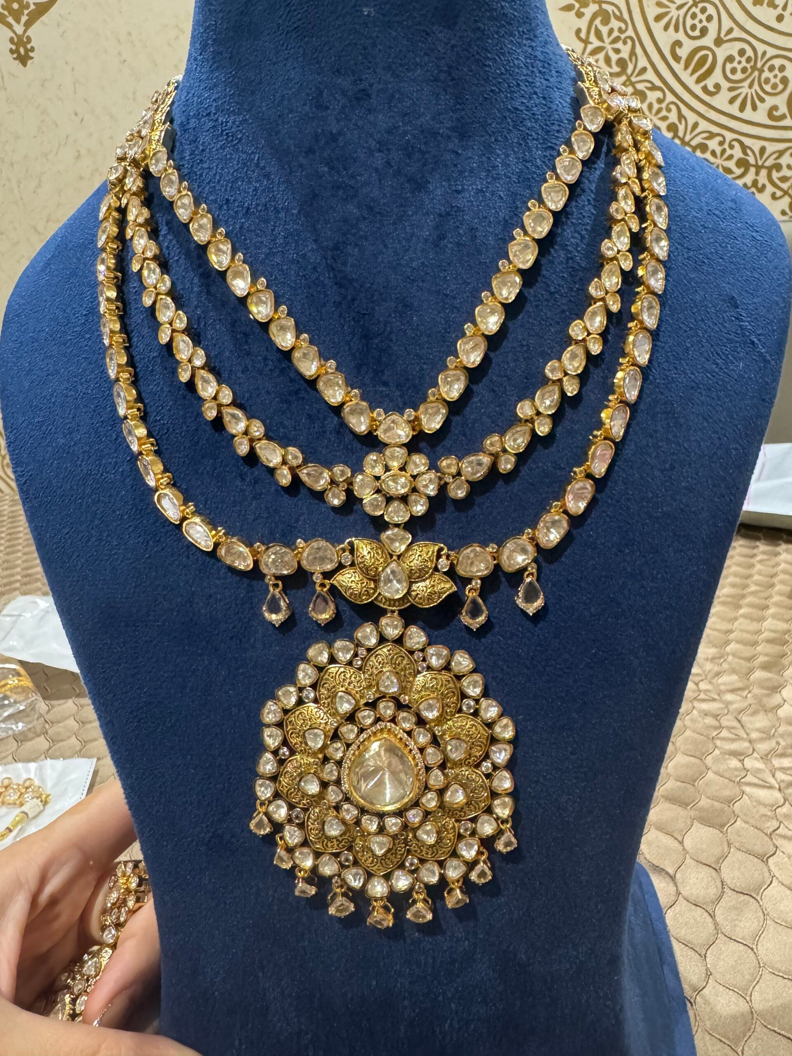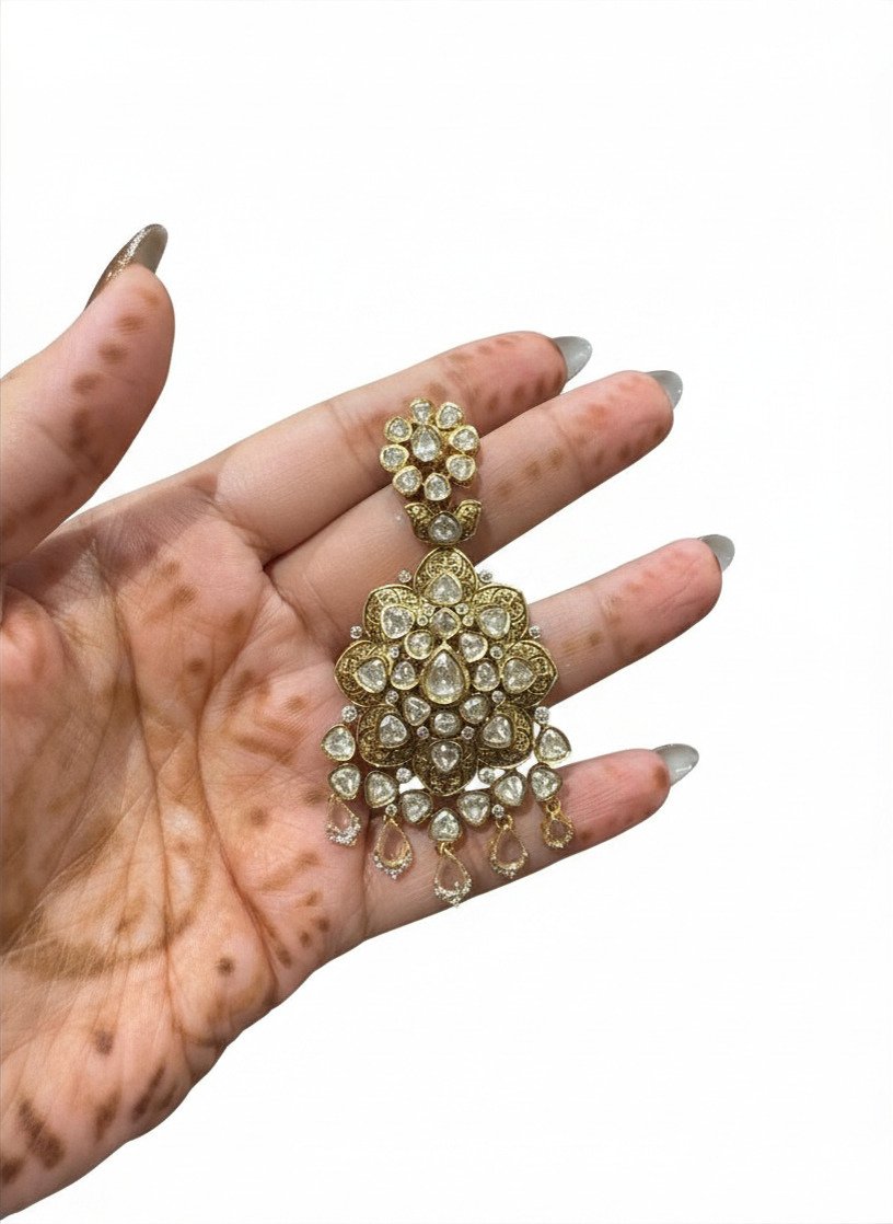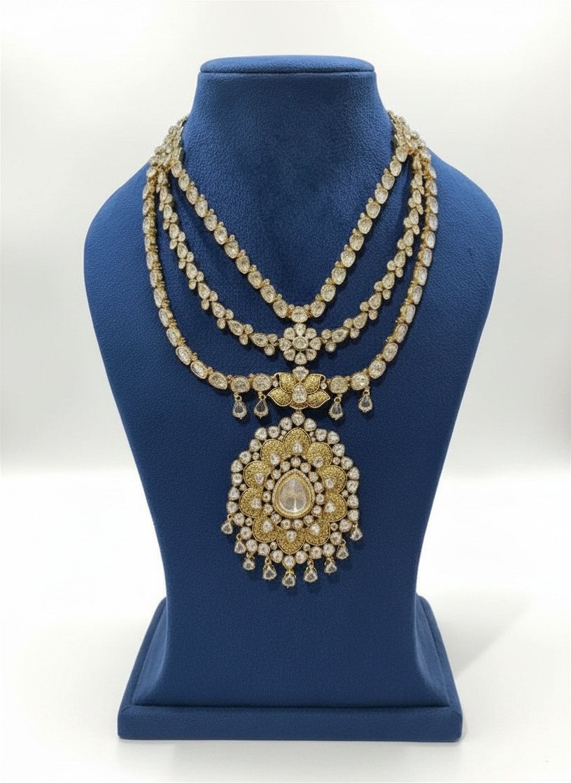 Designed to reflect heritage luxury, this piece captures the brilliance of real polki with a modern sparkle—perfect for brides who love elegance with a statement.