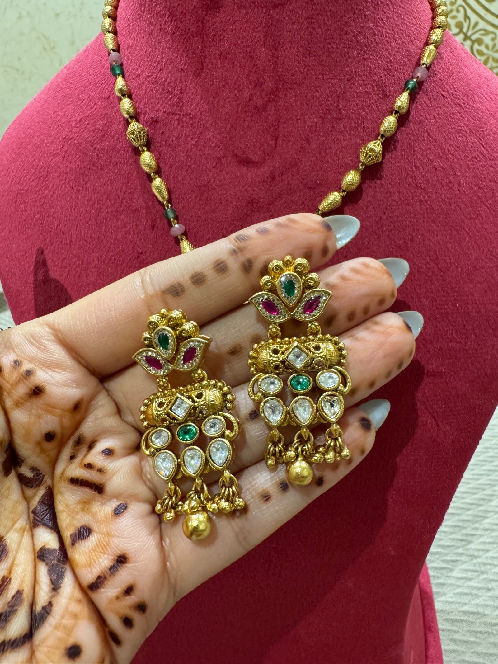 Elegant and versatile, this Gold Look Pendant Set is designed to give the rich charm of real gold jewelry. Paired with matching earrings, its classic design makes it perfect for both everyday wear and festive occasions.