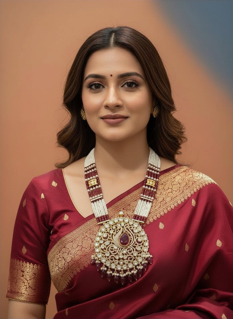 Where tradition meets luminous brilliance, Zariya Royale is adorned with finely cut moissanite polki stones that shimmer with every movement.
