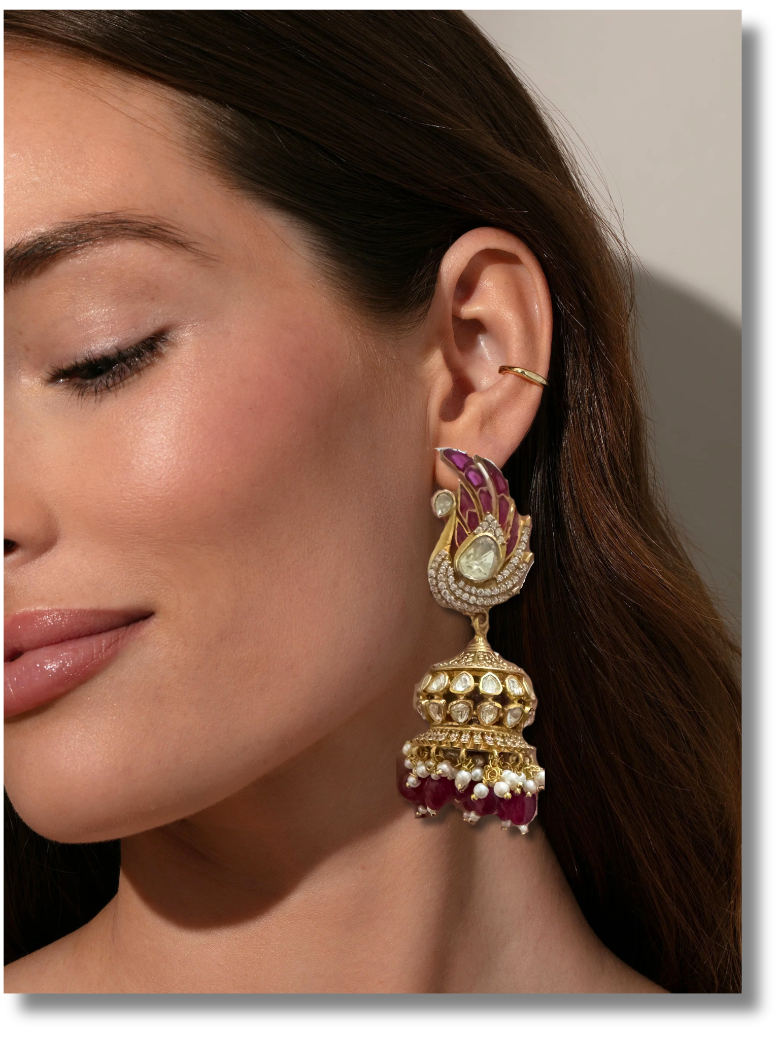 Royal, radiant, and timeless — these Moissanite Polki jhumkis bring heritage charm with a brilliant modern sparkle